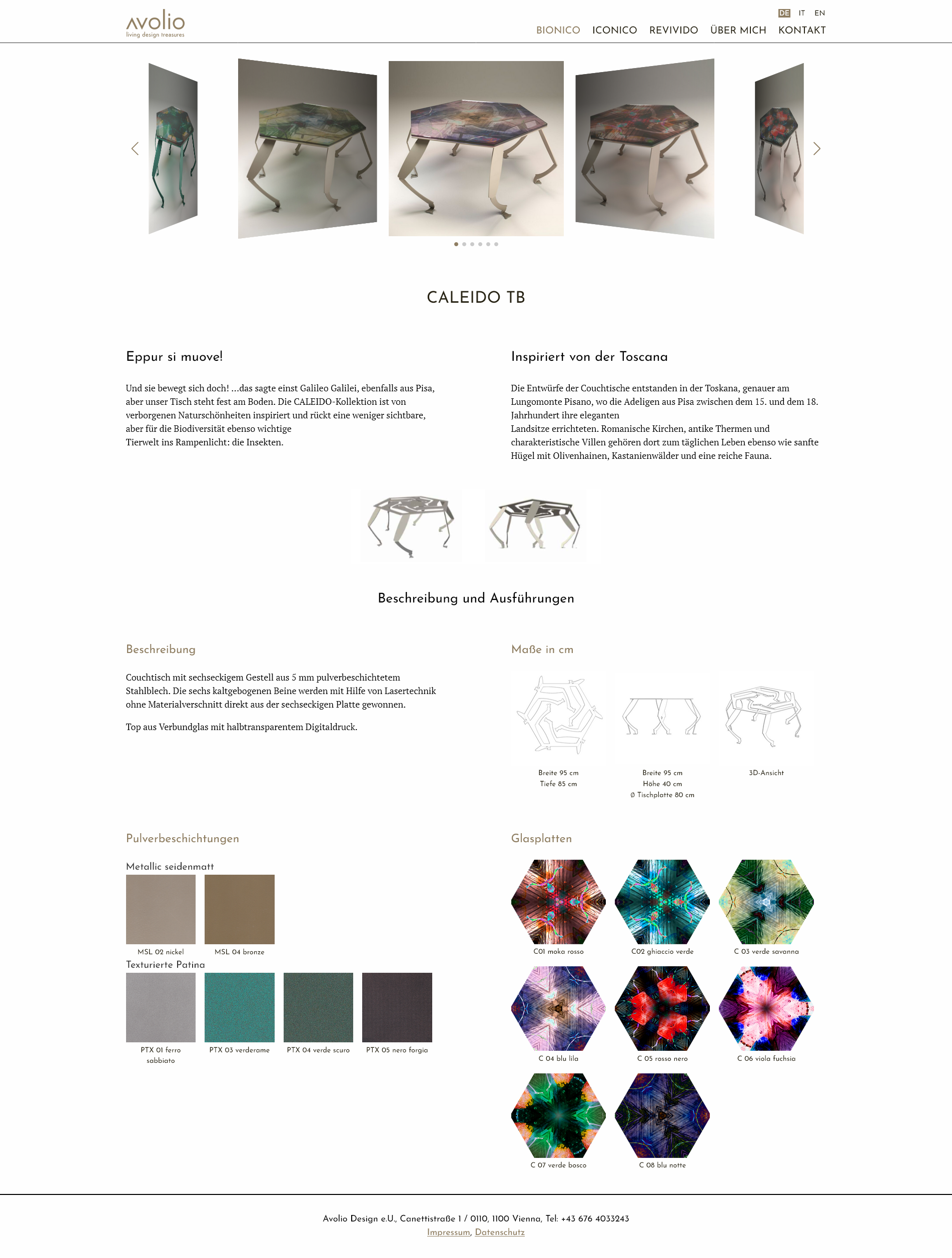Suza Avolio entwirft ungewöhnliche Möbel und Accessoires. Die Aufgabe war eine Website für die Designerin zu schaffen, die ihrem küstlereichen Blick entspricht und gleichzeitig leicht zu bedienen ist. Gemeinsam entwarfen und verbesserten wir, bis die Seite Suzas Vorstellungen entsprach. Parallel zu ihren Kolelktionen wird die Website laufend weiter ausgebaut.